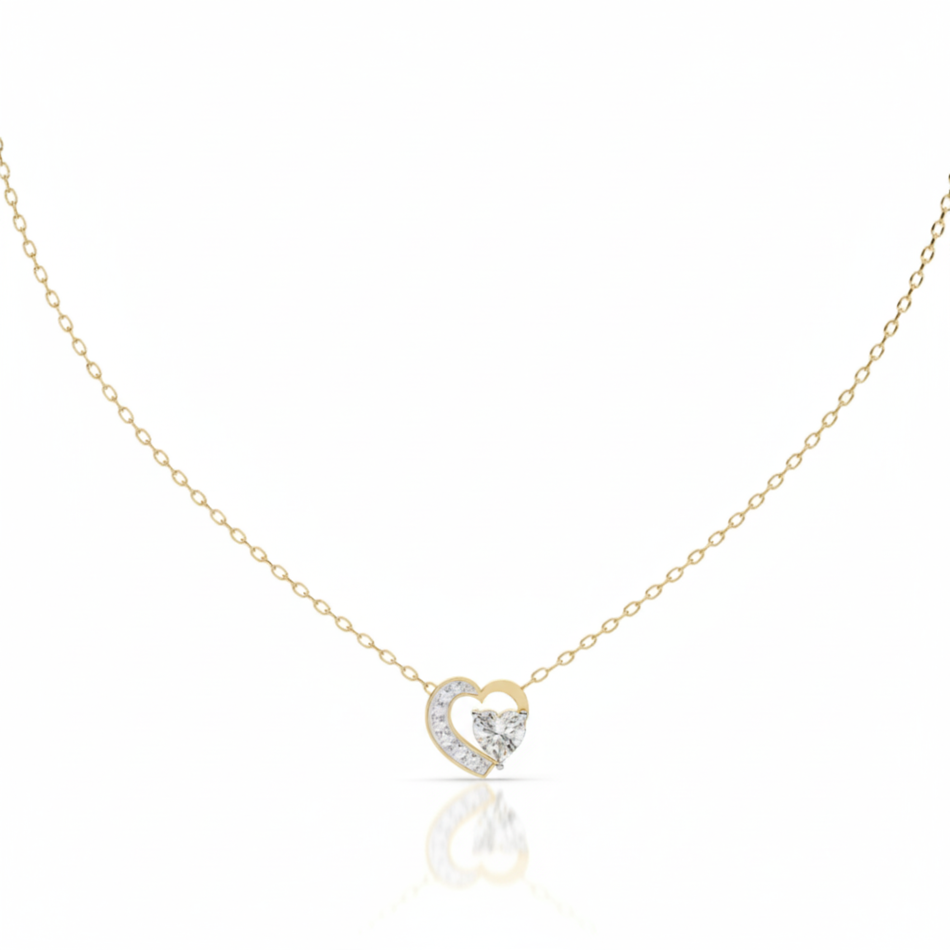 This elegant pendant features two interlocking hearts: one beautifully polished in radiant gold, and the other outlined in shimmering brilliant-cut diamonds. This design beautifully symbolises unity, affection, and everlasting togetherness. The graceful silhouette and sparkling accents create a perfect balance of warmth and brilliance. ✨