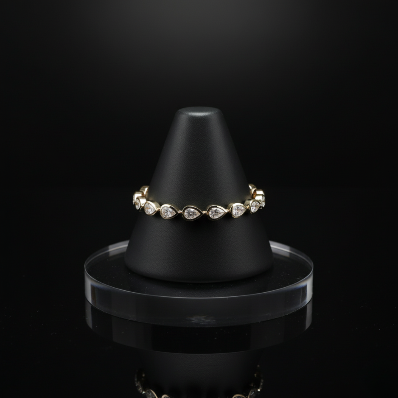 The distinctive bezel mounting completely surrounds the diamonds, providing superior security and a remarkably smooth, luxurious feel against the skin. The arrangement of the pear shapes creates a subtle, rhythmic, and textural pattern that is both unique and incredibly flattering on the wrist. This piece is built to be a cherished heirloom, perfect for wearing alone for understated elegance or stacking with bangles to add rich texture and dazzling sparkle.