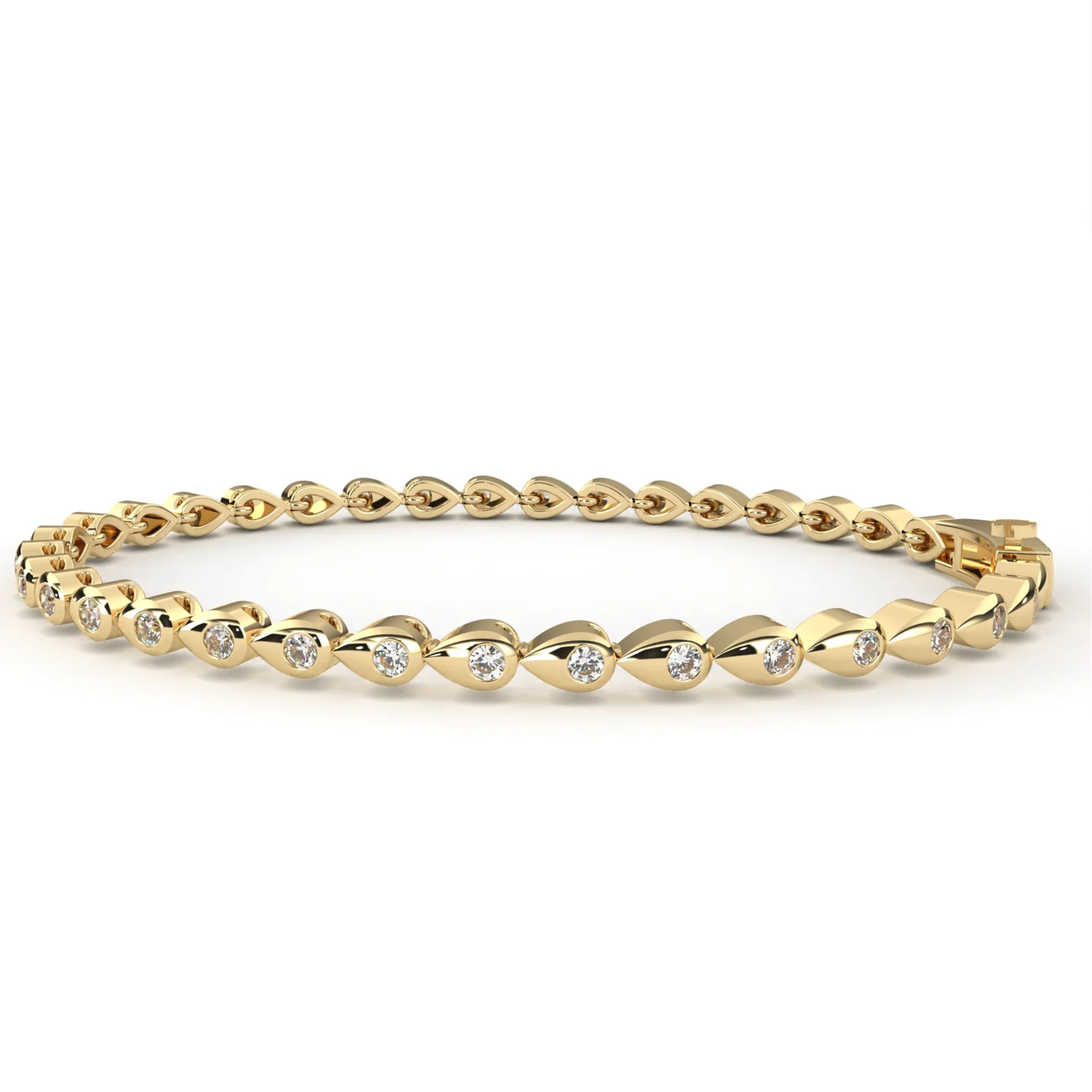 💫 Graceful and radiant, the Gold Teardrop Diamond Bangle is a stunning expression of elegance and sophistication ✨. Crafted in polished gold 💛, this sleek bangle features a beautifully sculpted teardrop design 💧, accented with brilliant-cut diamonds 💎 that shimmer delicately along the curve. The teardrop motif adds a touch of femininity and flow, making it a standout piece that feels both modern and timeless 🌟.