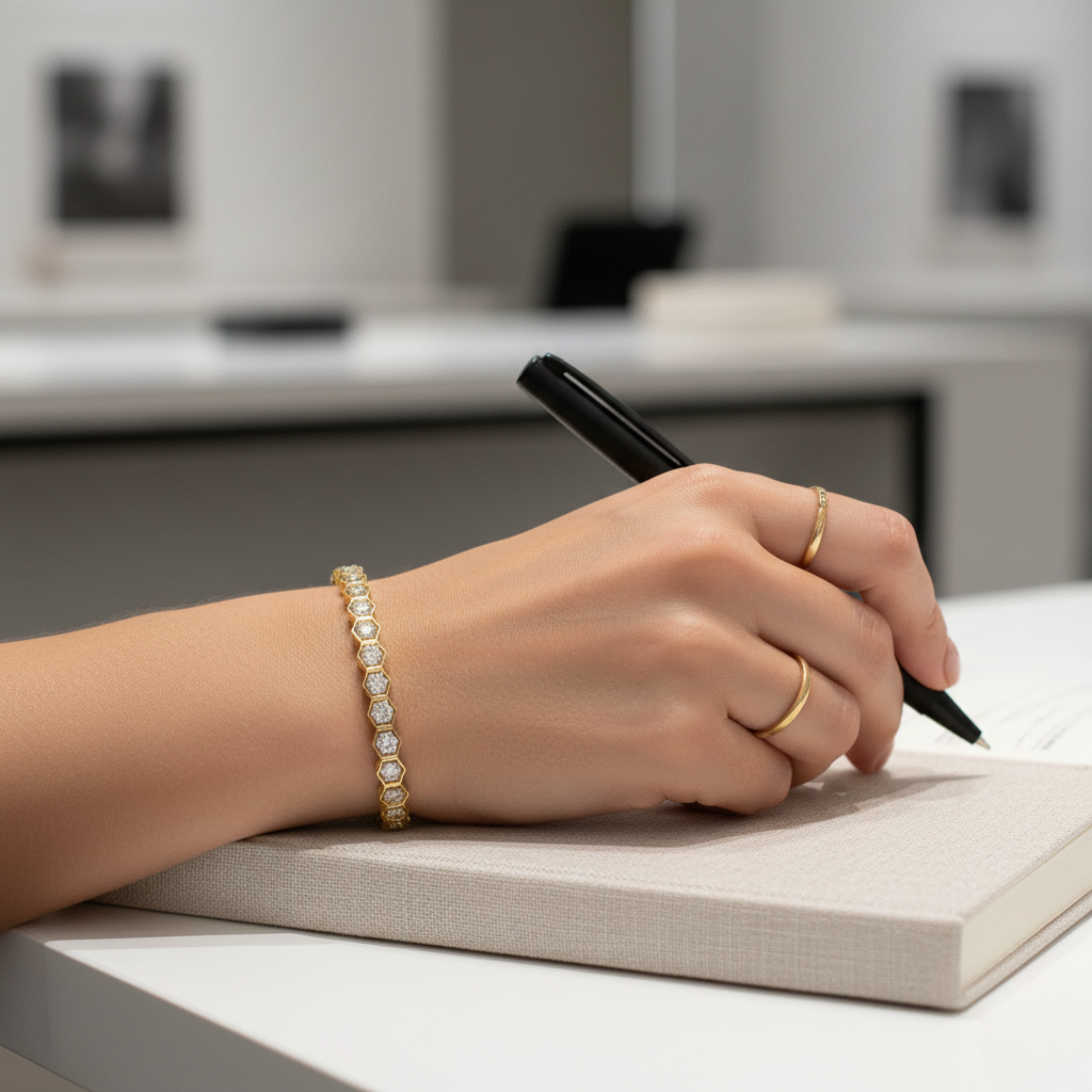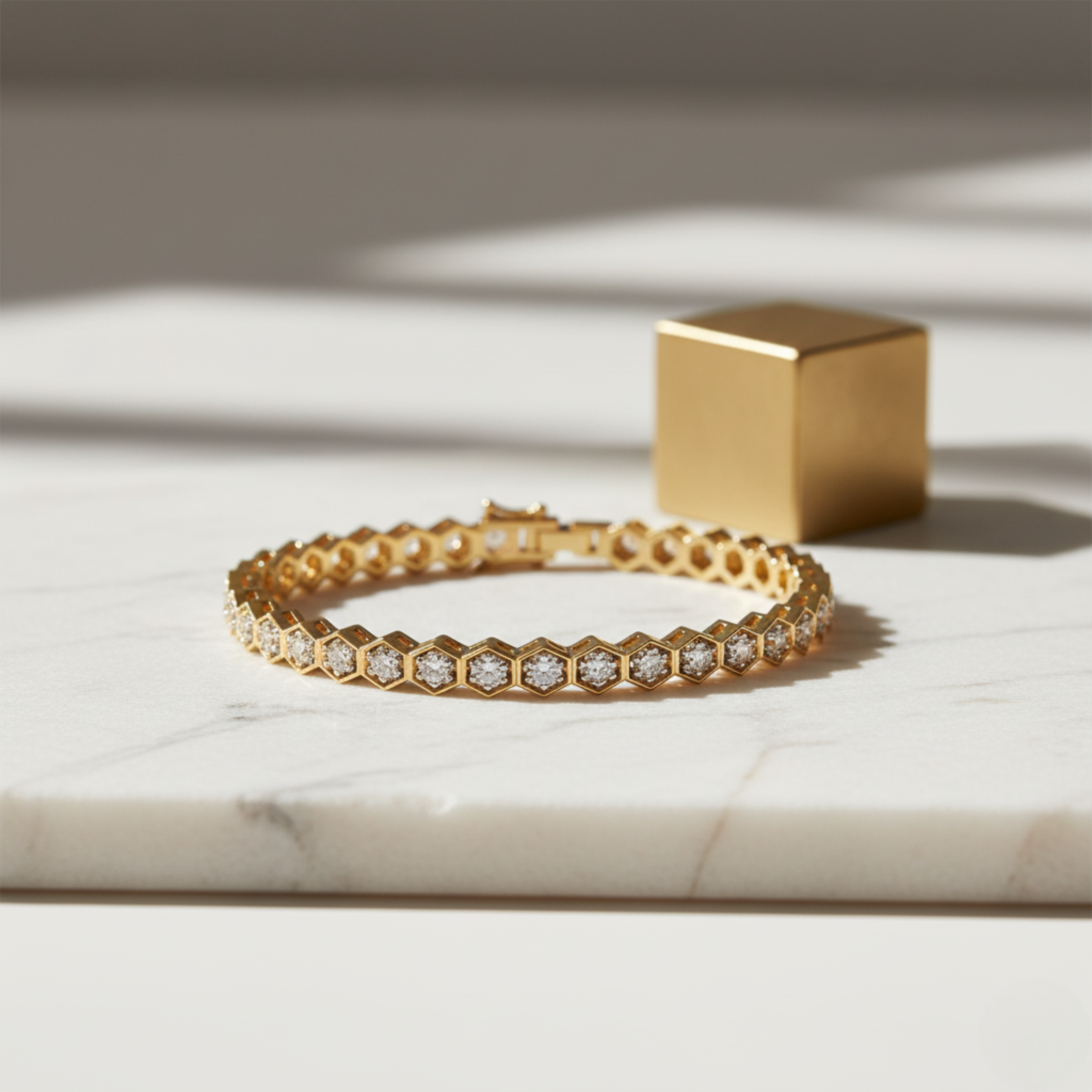 Designed for the modern woman 💫 who loves clean lines and refined luxury, this bracelet effortlessly elevates both day ☀️ and evening 🌙 looks. Whether worn solo as a statement or layered with other fine jewellery 💖, the Gold Hexagon Diamond Tennis Bracelet is a striking blend of innovation, sophistication, and enduring style 🤍.